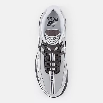The RC56 is a contemporary execution of the performance heritage and timeless craft. The low-profile silhouette is inspired by an archival, early-2000s cross country racing shoe, bringing an elegant, streamlined feel to the era’s technical aesthetic. A perforated leather and nylon mesh upper features sweeping overlays and printed lines that suggest the speed and movement of running.